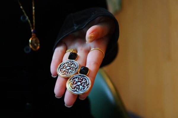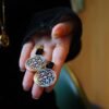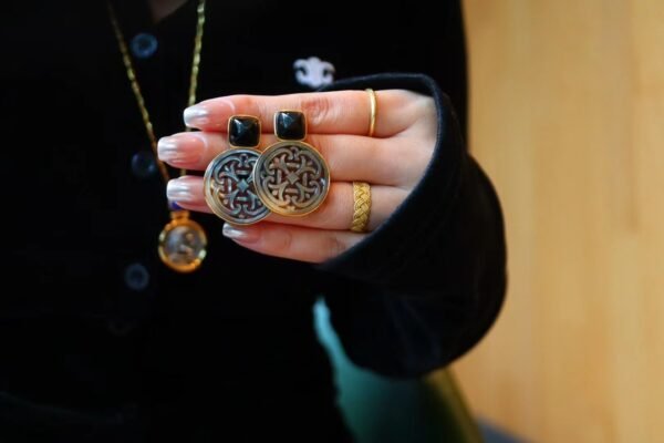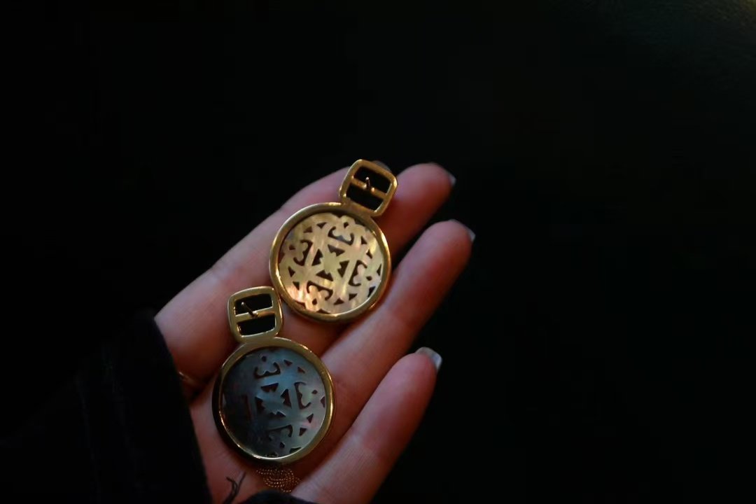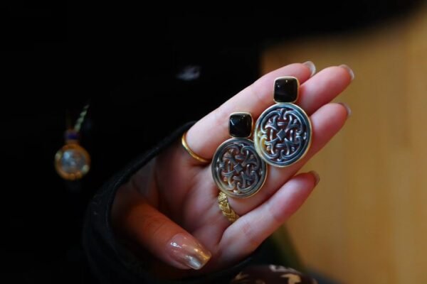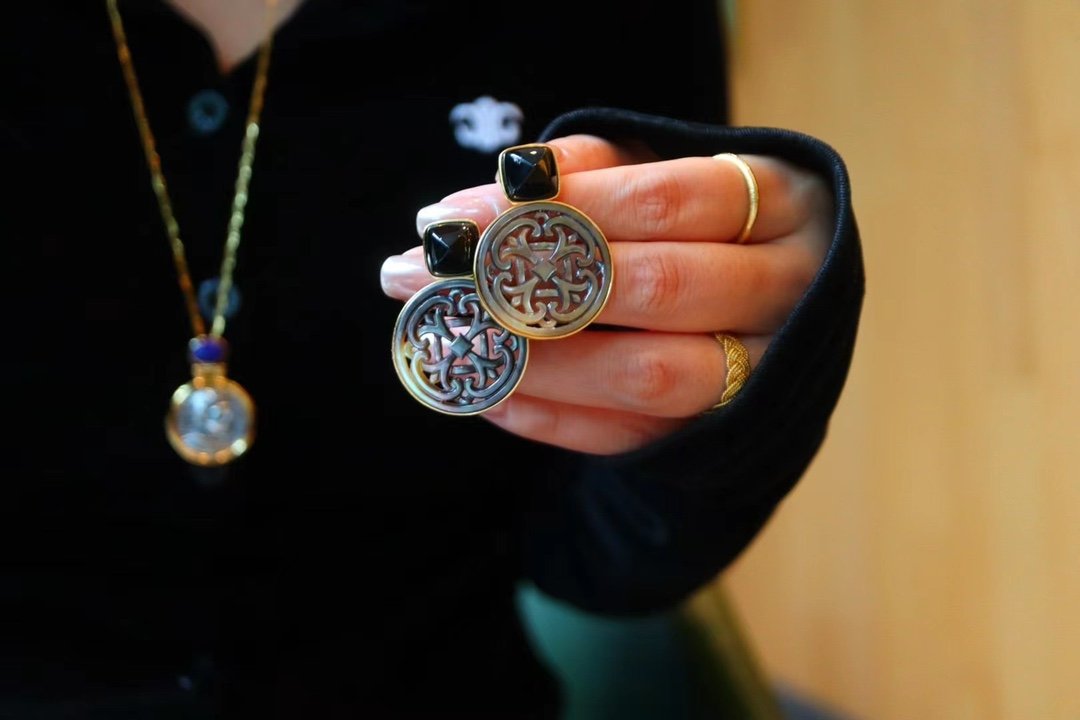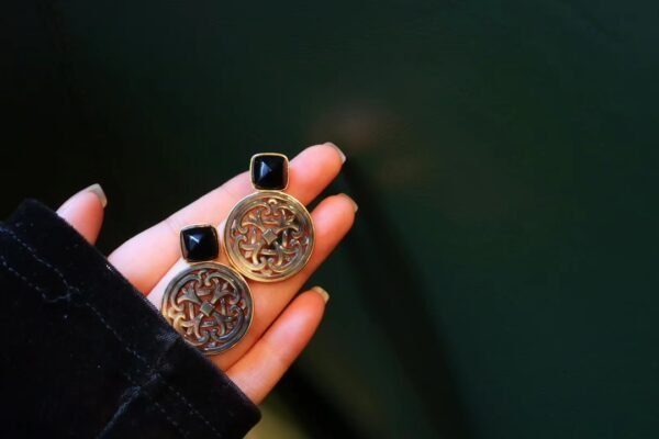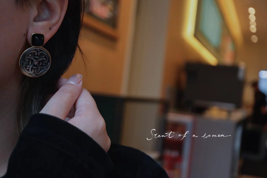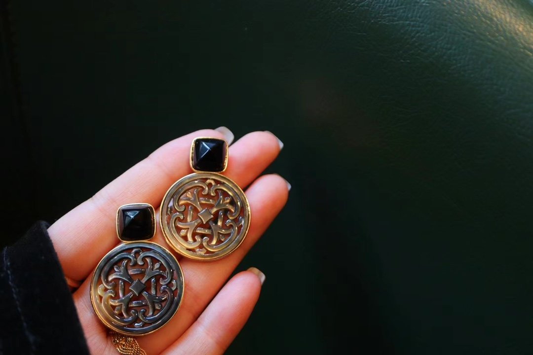 Featuring intricate openwork carved black shell and sleek black onyx gemstones, these statement stud earrings exude a unique blend of retro charm and modern minimalist fashion.